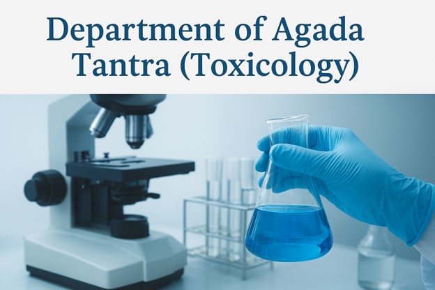The Department of Agada Tantra is devoted to the study of Ayurvedic toxicology, encompassing the diagnosis, prevention, and management of poisoning caused by natural, chemical, and artificial agents. It deals with Visha Chikitsa (treatment of poisoning), Jangama Visha (animal poisons), Sthavara Visha (plant poisons), and Garavisha (artificial poisons), along with medico-legal aspects of Ayurveda.
